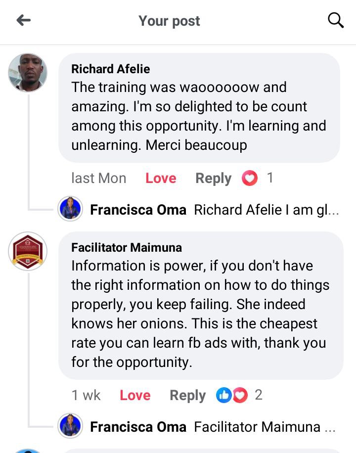 If you have been looking to learn how to run a high converting Facebook ADs with your smartphone, This is a great opportunity for you to learn how to sell out your products on whatsapp using Facebook ADs. If you are business owner looking to start making crazy sales with Facebook or if you are a service based business provider looking to land high paying clients on Facebook… With just N2,000 only, you will learn how to run a high converting Facebook ADs with your smartphone. Would you reject a N2,000 course that will teach you how to attract ready-to-buy customers for your business, land high paying clients and 10x your sales?Imagine paying N2,000 and saying goodbye to low sales. Imagine paying N2,000 now and start making 6figures every week from your business after implementing all the strategies that you Jake learnt.. You no longer struggle to get buying customers for your business after talking this course Pay N2,000 Now to:A/c no: 6331357216Account Name: Leadvasity Bank: Monie pointIf you are outside Nigeria….Click here to pay > https://selar.co/8wcd09Send proof of payment to leadvasity@gmail.comYou might not see this course after today… Pay now!